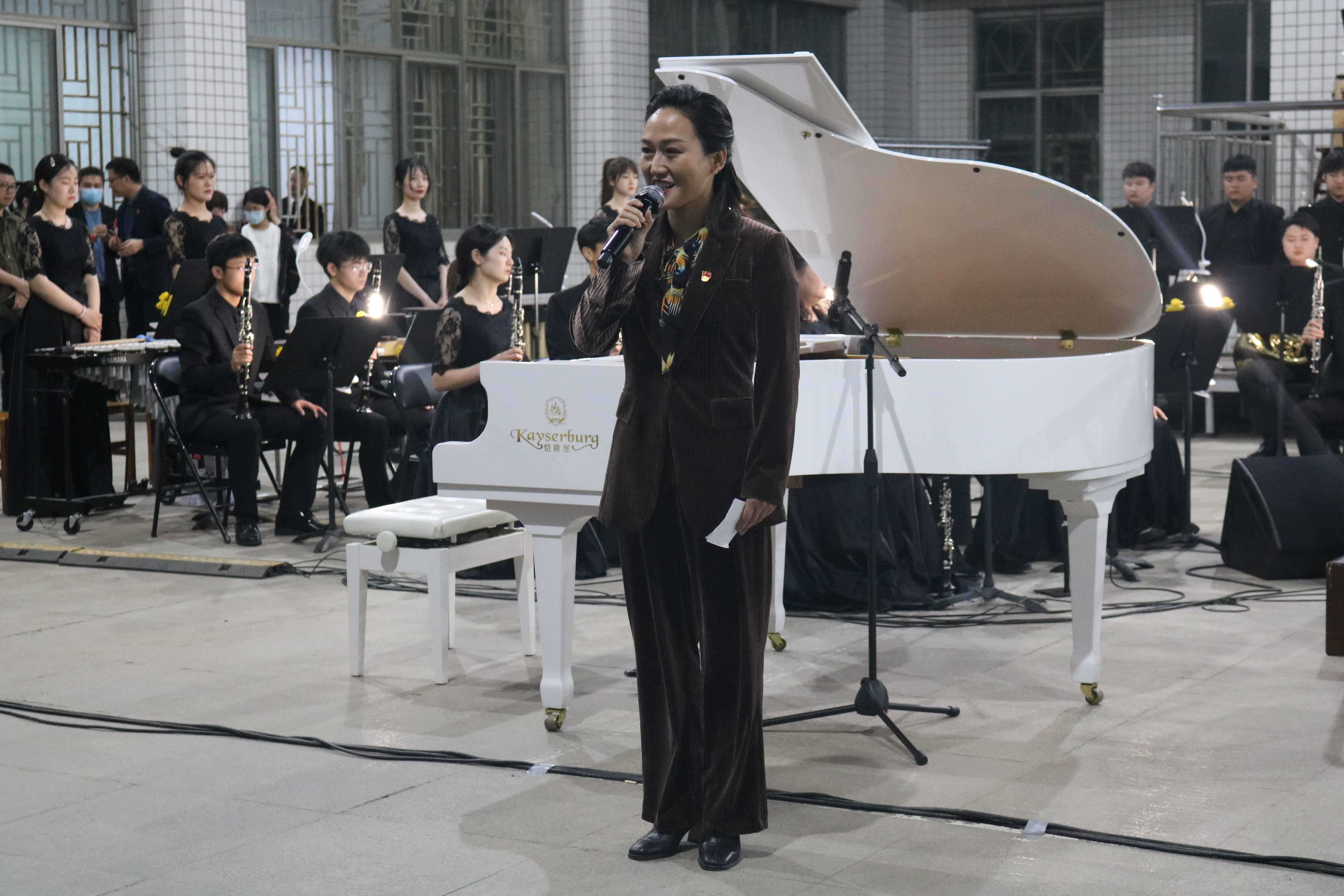 交响管乐团共演奏9部红色经典文艺作品,王艳梅、蒋修辉、陶俊丽、陈睿4名宣讲人从作品背景、精神内涵等方面向师生进行赏析解读;乐团指挥徐航从交响管乐团的组织构成、乐器编配等方面向师生普及了相关知识。交响管乐团“红色经典,礼赞百年”主题党日活动,以开放排练、大众参与的方式,增强体验感的同时,做文化自信的传播者,艺术审美的金钥匙,音乐鉴赏的大课堂,服务社会的练兵场,以文艺作品熏陶人,以红色基因引领人,通过红色文化浸润老员工思想政治教育,厚植爱党爱国情怀。