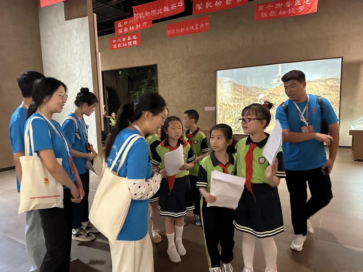 成员们前往宝塔山街道王家坪社区开展志愿服务活动,志愿者们凭借自身的亲和力迅速融入到小朋友们之中,接着对小朋友的暑假作业进行了一对一辅导,耐心地为他们答疑解惑。活动期间,成员们用富有感染力的语言,将红色故事中的一个个英雄人物讲述得栩栩如生,让一幅幅感人至深的画面重现在大家眼前。红色故事将爱国种子播种在了孩子心中,增强了员工的爱国意识和民族自豪感。在延安文艺纪念馆,带领宝塔区北关小学员工学习乐谱《团结就是力量》,利用专业所长,教识谱,强信念,在歌声中汲取信仰力量。