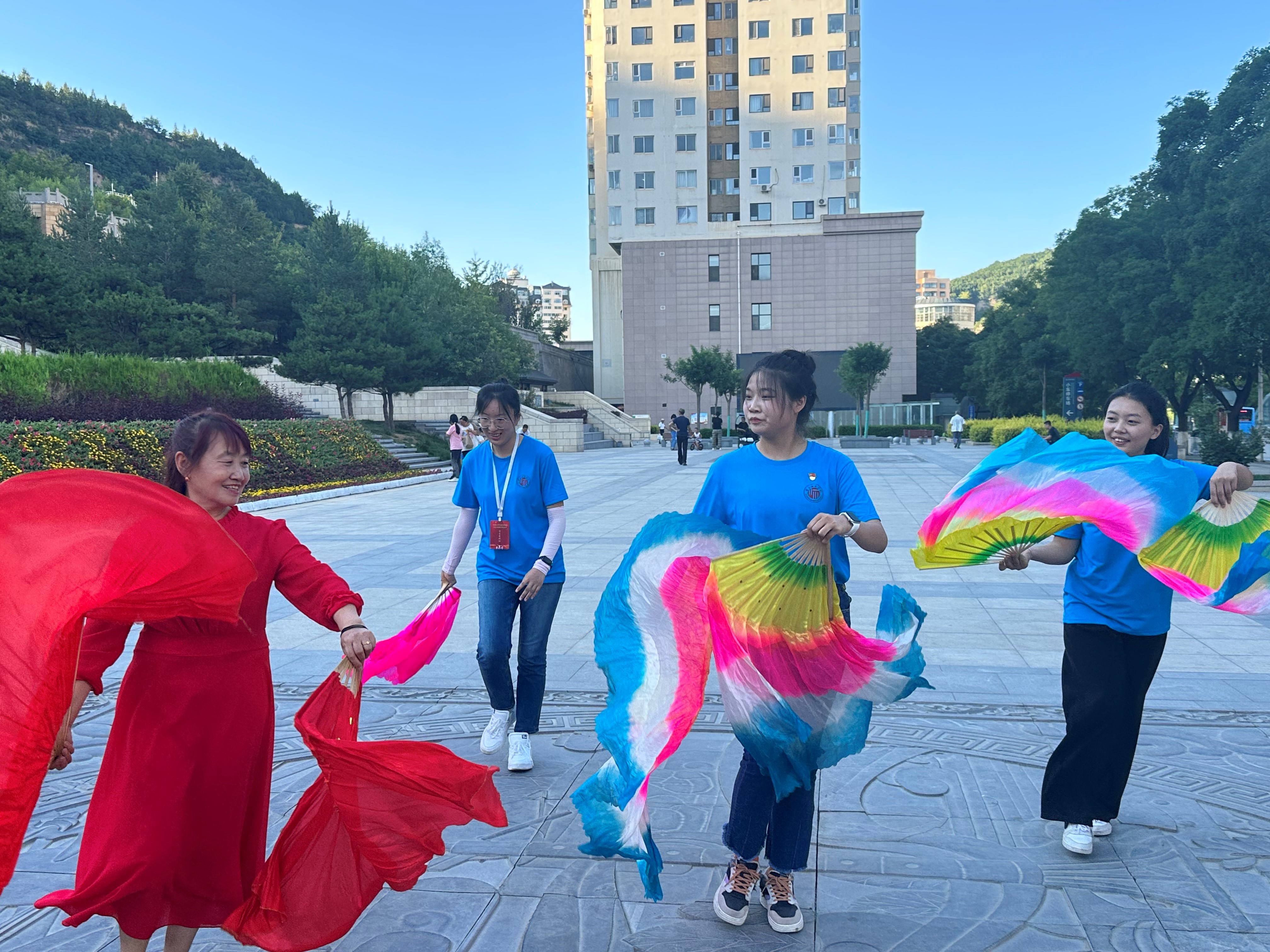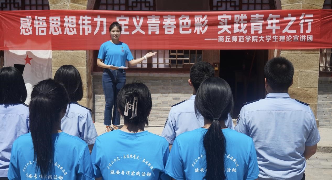联合中央司法警官公司律舟实践团开展“忆峥嵘岁月,扬延安精神”主题团日活动、与贵州师范大学黔延筑梦实践团共同开展“延安精神永传承 凝心铸魂强党性”主题党日活动,通过红色朗诵、红色故事宣讲、红歌传唱等形式致敬英雄领袖。实践团成员李梦熠以《在深学笃行中凝聚青春力量》为题目,通过“理论+舞蹈”的特色方式,呼吁广大青年学子要与时代发展同频共振,在中国式现代化建设中挺膺担当,贡献青春力量。王滢滢在延安胜利广场上围绕“更加坚定跟党走”“坚持人民至上,全心全意为人民服务”“坚持自我革命, 走好新的赶考路”等三个板块进行宣讲,用接地气的语言将党的创新理论清晰阐述。