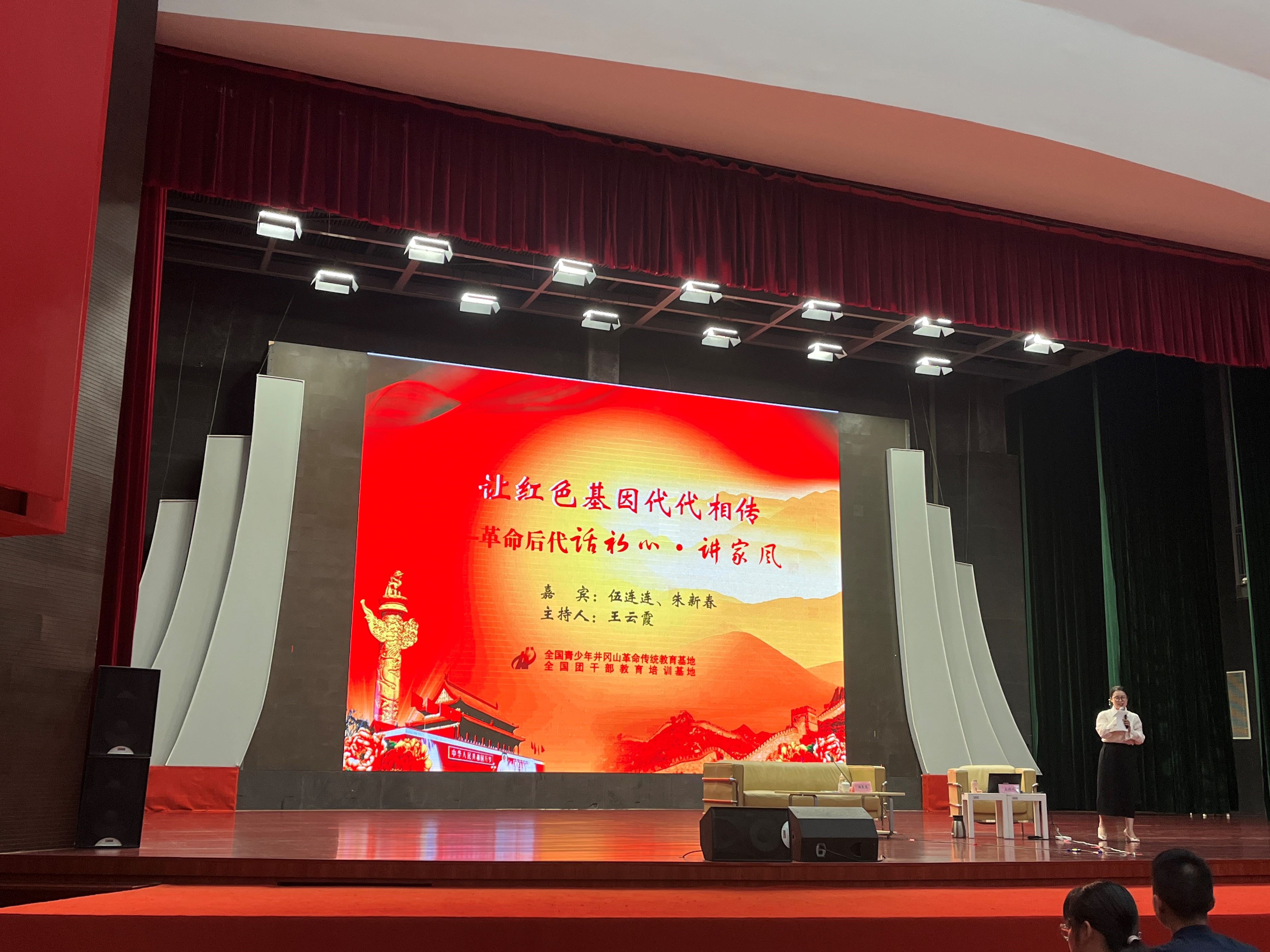 下午,实践团成员们在基地报告厅参加“让红色基因代代相传——革命后代话初心、讲家风”主题教学活动,基地教研处教师王云霞主持。活动邀请了无产阶级革命家、军事家、外交家,中国人民解放军原副总参谋长伍修权同志的女儿伍连连老师和开国上将朱良才同志的儿子朱新春老师,他们用朴实的语言为大家讲述了伍修权、朱良才两位革命家光辉的一生。一段段红色故事,感人肺腑,现场不断响起热烈掌声,老一辈革命家坚定的理想信念、满腔的革命热情和不怕流血牺牲的革命主义精神深深地感染了大家。