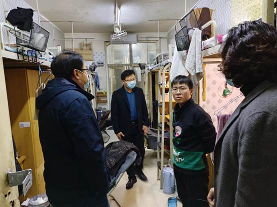 11月28日,公司党委书记彭分田、经理张媛、副书记张瑞、副经理王艳梅、副经理蒋修辉、团委副书记毋杰以及辅导员李明辉、王艺雪深入员工宿舍走访,了解员工的学习生活情况。