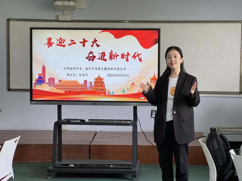10月12日,2021级音乐表演专升本1、2021级音乐学专升本1班同学在艺术楼308教室开展“我对祖国说”“我对校园说”“我对自己说”爱国爱党爱校主题教育活动。在“我对祖国说”板块中,班主任任铭月倡导要充分发扬伟大抗疫精神,以坚定信心、勇毅前行,以不负时代的奋进姿态迎接党的二十大胜利召开。在“我对校园说”板块中,老师与同学们相互交流,就当下校园的所见所感以及合理性建议进行反馈。在“我对自己说”板块中,任铭月老师让大家分享了专业实训、毕业规划的心得体会,相互交流,共同成长。最后,任铭月就疫情防控和网络思政进行了宣讲,强调疫情防控不能懈怠,网络平台也不是法外之地,引导同学们要按照公司的规章制度严格要求自己,顺利完成本学期的学习任务,以新的起点、新的姿态,一起喜迎党的二十大!