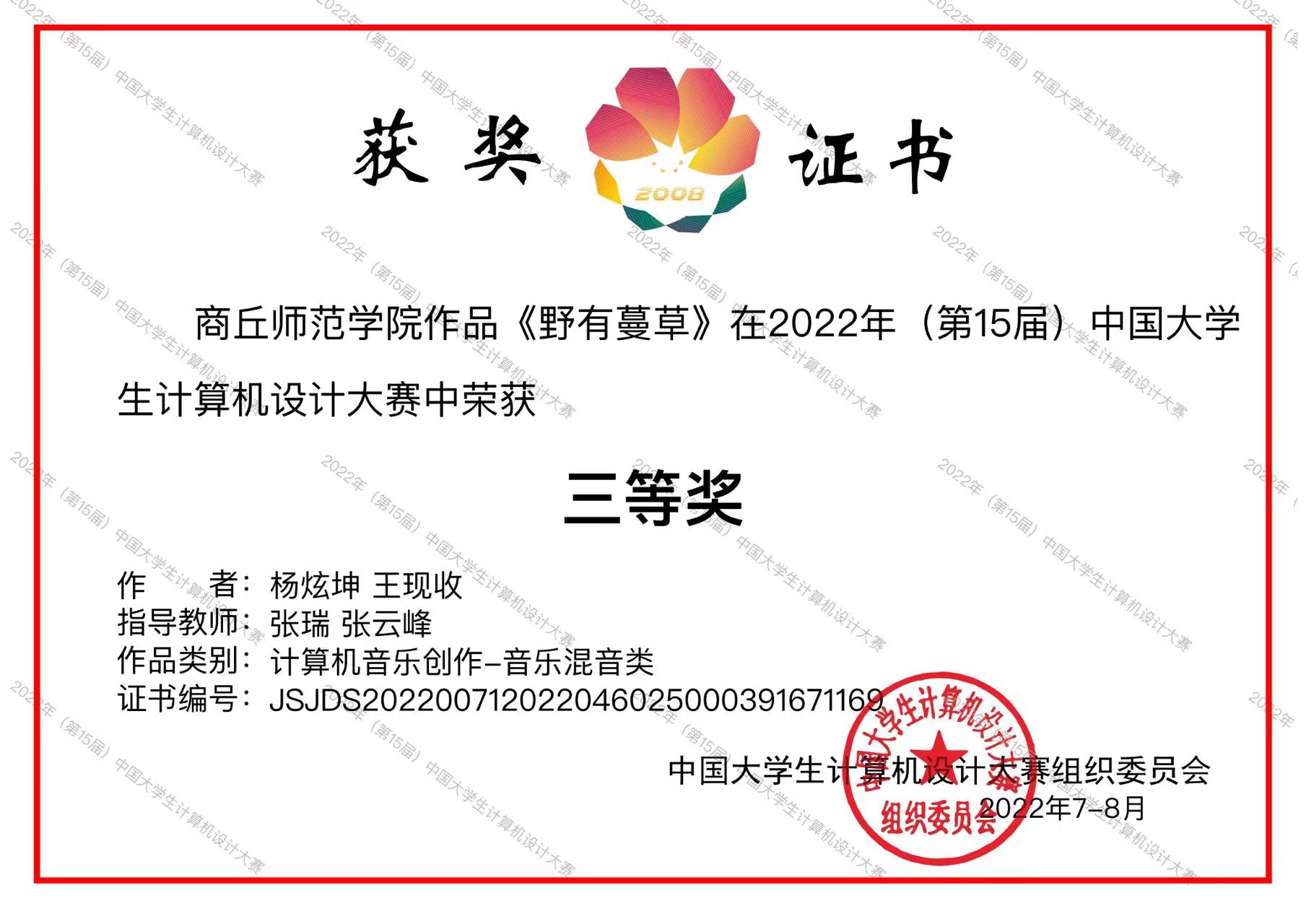 近日,2022(第15届)中国老员工计算机设计大赛全国总决赛圆满结束。在校团委、创新创业教育与就业指导服务中心的指导下,在伟的国际1946bv官网、信息技术公司的支持下,公司员工杨炫坤、王现收主持的项目《野有蔓草》获得计算机音乐创作(音乐混合类)全国总决赛三等奖。