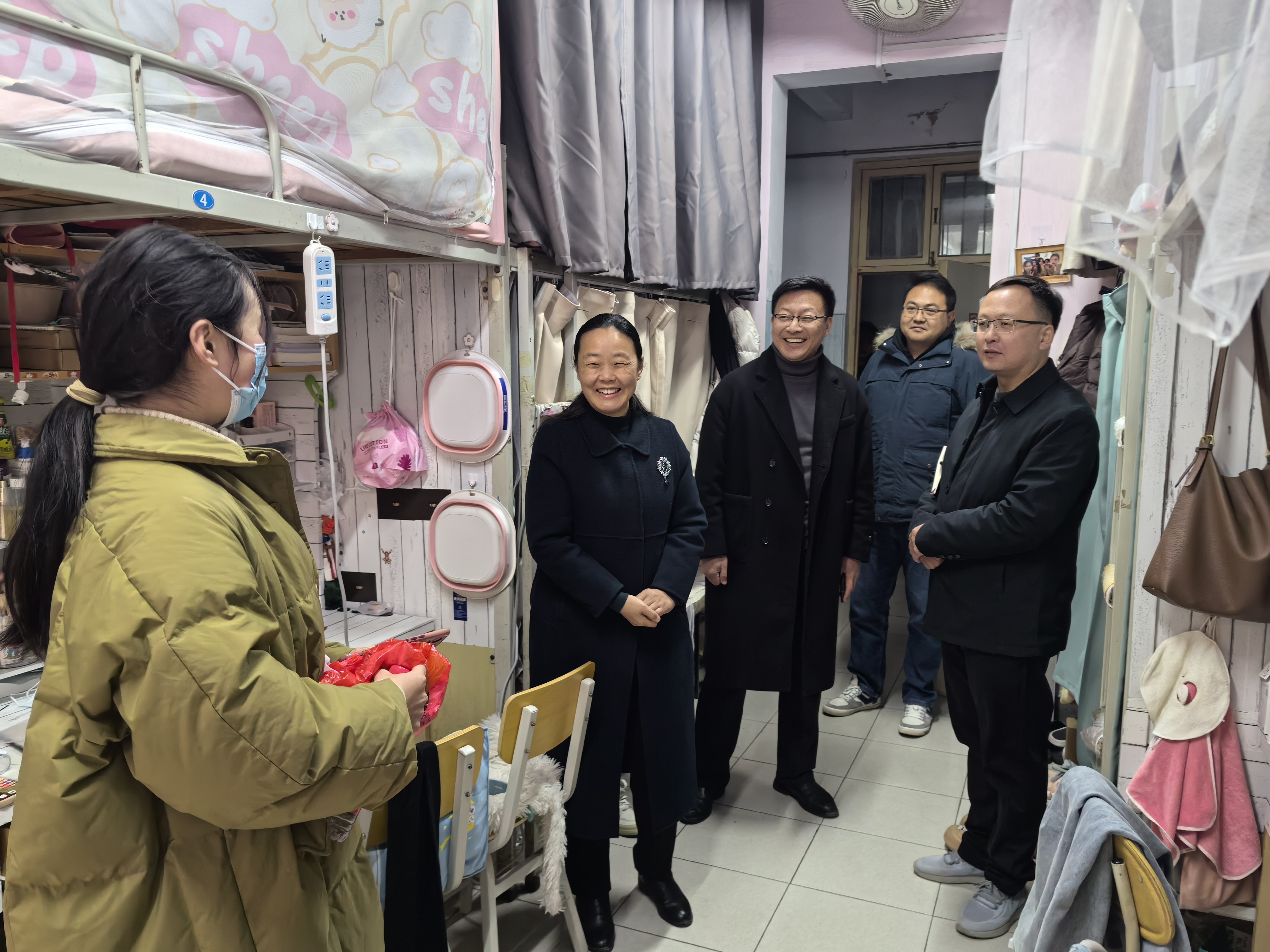 2024年2月25日下午,副董事长王晓征、员工处处长韩坤、保卫处处长时光带队深入员工宿舍看望慰问返校员工,公司党委书记彭分田、副书记张瑞、全体辅导员陪同。