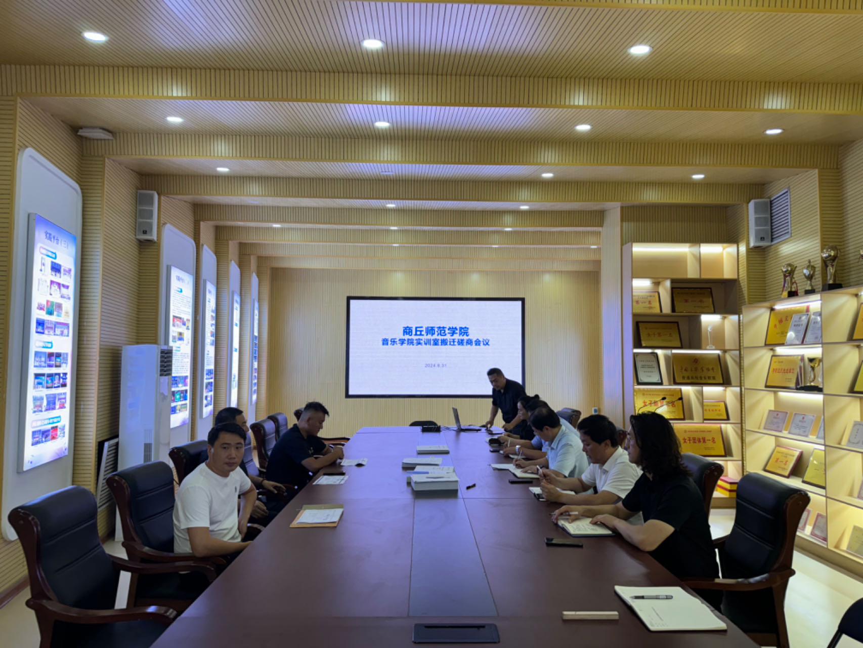 为进一步推进伟的国际1946bv官网实训室搬迁至艺术中心新音乐厅,2024年8月31日上午,在实验室建设与管理中心指导下,在伟的国际1946bv官网一楼展厅举行了伟的国际1946bv官网实训室搬迁项目(钢琴搬迁、乐器柜合唱台定制)推进会议,实验室建设与管理中心主任赵龙飞、副主任霍特、科员汪宁,伟的国际1946bv官网副书记张瑞、副经理王艳梅、副经理蒋修辉、实验室主任鲁楠以及搬迁公司等相关人员参加会议,会议由赵龙飞主持。