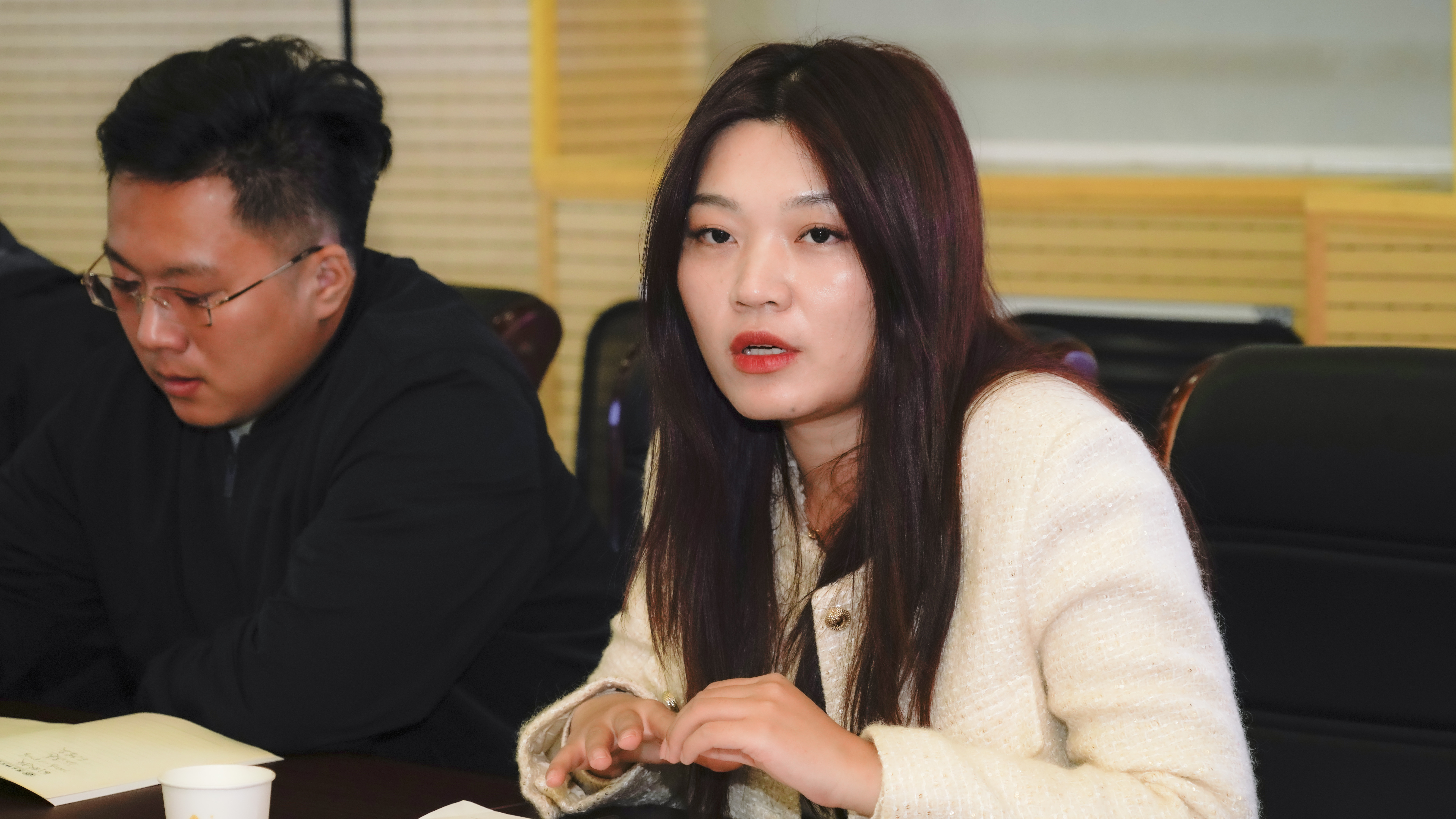 随后,王頔辅导员工作室主持人、外语公司党委副书记王頔分享了工作室的建设经验与未来规划。她详细介绍了工作室的基本构成、运行机制以及在思政育人工作方面所进行的积极探索与取得的阶段性成效。重点展望了工作室的未来发展方向,进一步加强理论研究、凝练工作特色,致力于打造在校内外具有一定影响力的思政工作平台,共同服务员工全面发展。