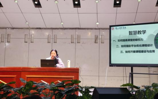 赵静在培训中提出课程设计需紧扣“学情分析+教学方式+教学内容”核心逻辑,构建“知识、能力、素质”三维教学目标体系,提高课堂吸引力。针对智慧教学背景下的模式创新,赵静详细解读了以“线上自主学习+线下协作探究”的混合式教学模式。在技术赋能教学方面,重点介绍了 AI 技术在课程建设中的创新应用。为其他课程的智慧化建设提供了可借鉴、可推广的实践经验。