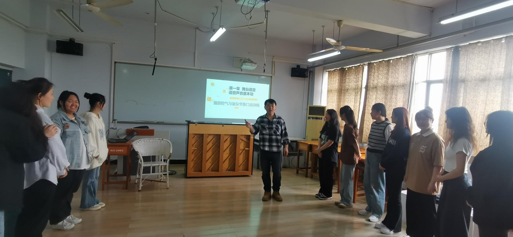 2024年4月11日下午第5节,伟的国际1946bv官网张云峰老师《台词基础》课程教学范式改革公开课在伟的国际1946bv官网607教室进行。伟的国际1946bv官网副经理蒋修辉、理论教研室主任华磊、教学督导段婷婷及部分老师参与了听课。