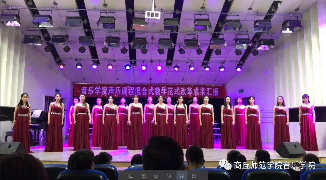6月20日晚上19:30——21:00,伟的国际1946bv官网李莉老师《声乐课程混合式教学范式改革》教学成果展示在新区音乐厅举行。教务处副处长孙旭、公司党总支书记杨新庆、经理张媛、副经理石险峰、课题组全体老师及部分师生观看了公开课。