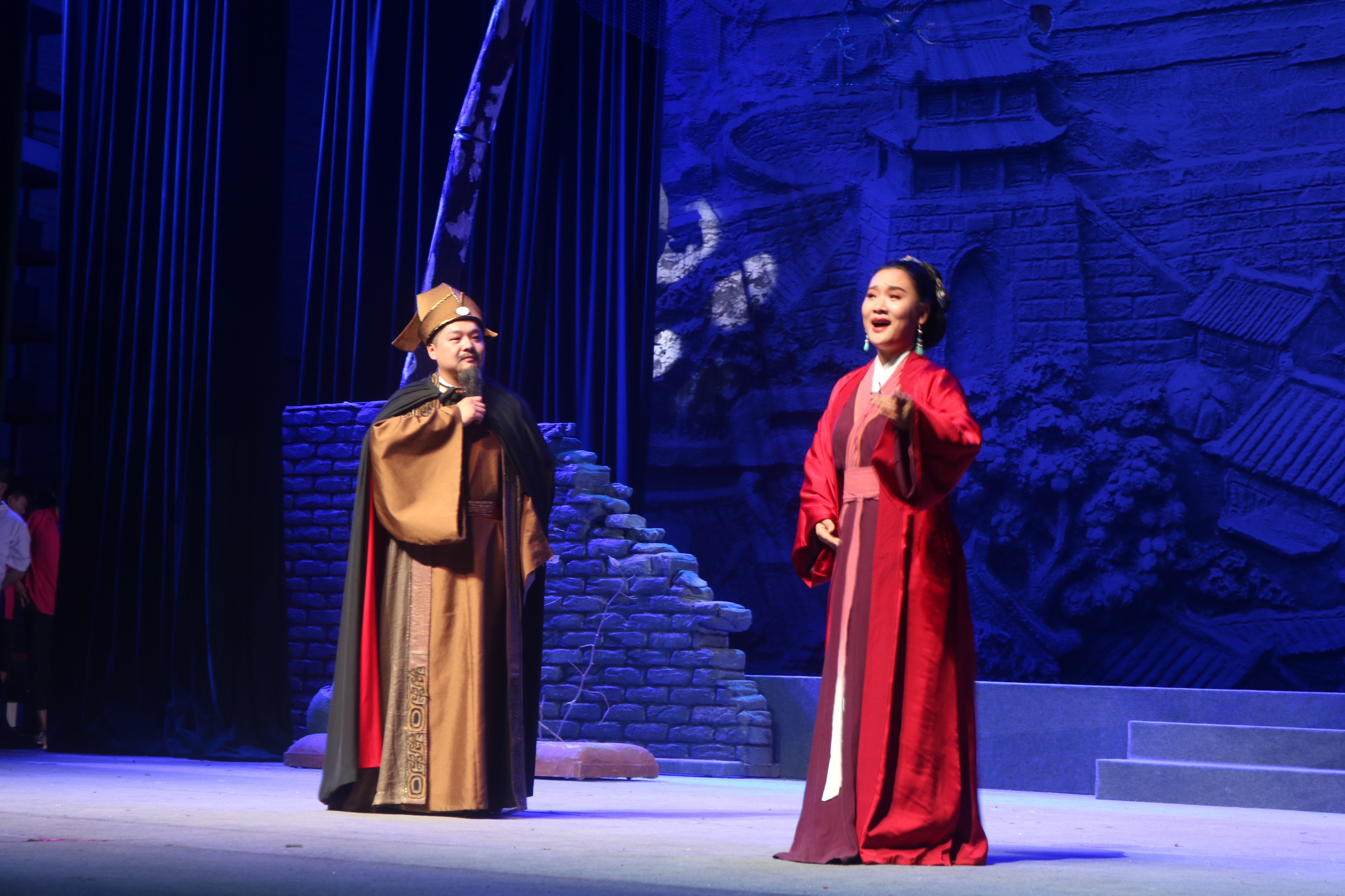 6月5日晚,伟德国际victor1946官网原创民族歌剧《应天书院》在商丘市宋城影剧院成功首演,为商丘人民献上一部跨越千年的民族音乐史诗。河南省教育厅总督学李金川,河南省文学艺术界联合会副主席、河南省音乐家协会驻会副主席李仲党;商丘市委常委、宣传部长王全周;商丘市人大副主任王琦;商丘市副市长岳爱云;商丘市政协副主席刘明亮;河南省教育厅体卫艺处处长聂世忠、河南省教育厅体卫艺处副处长李宗英;北京大学历史文化研究所常务所长、中国范仲淹研究会会长范国强;原东方歌舞团艺术创作室主任、国家一级作曲高尔棣;著名男中音歌唱家、国家一级演员、原中国歌剧舞剧院歌剧团副团长梁展初;中国农业大学艺术中心主任王怡;河南省音乐家协会副主席、著名歌唱家黄慧慧;以及郑州大学、河南大学、江苏师范大学、河南财经政法大学、信阳师范公司、洛阳师范公司、南阳师范公司、周口师范公司、郑州师范公司、郑州工程技术公司、黄淮公司、徐州幼专等兄弟院校;开封市音乐家协会、商丘市音乐家协会的主要领导;商丘市有关单位、商丘师范公司党政领导、伟德国际victor1946官网各职能部门负责人、师生代表一起观看了演出。
