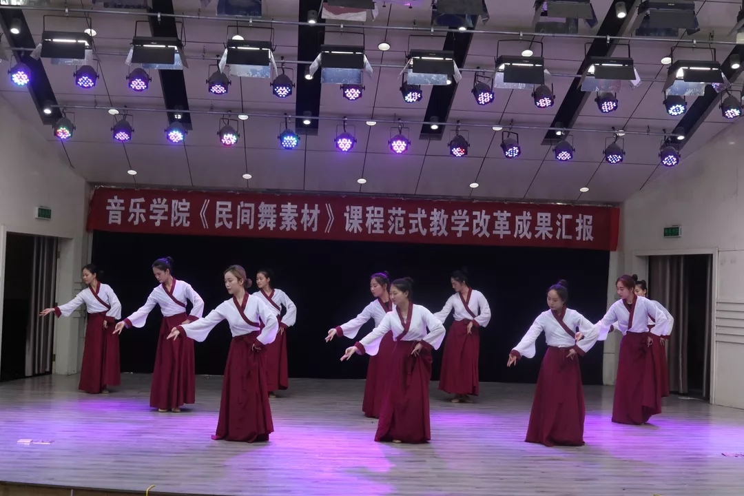 6月29日上午,伟的国际1946bv官网《民间舞素材》课程混合式教学范式改革教学成果汇报在音乐厅举行。《民间舞素材》课程是公司首批立项的教学范式改革项目,项目组成员由伟的国际1946bv官网舞蹈编导系部分老师组成。项目从课程内容构架,课前课后的相互关联、考核评价以及横向素质拓展等方面进行了改革,更加注重教学过程及成效,体现复合型应用人才培养目标。在引导员工主动学习的同时,极大的提高了员工学习专业的热情,改革成效显著。目前绝大部分舞蹈编导专业员工具备了:理论研究、舞台表演、作品创作、组织策划等综合实践应用能力。在原创舞剧《桃花扇》、《应天书院》,CCTV7全国农民新春联欢会、CCTV10《中国影像方志》、CCTV7美丽乡村行、中国商丘国际华商文化节开幕式、商丘市五四青年表彰晚会等一系列重大活动中,舞蹈编导专业员工的综合素质得到了全方位展现。