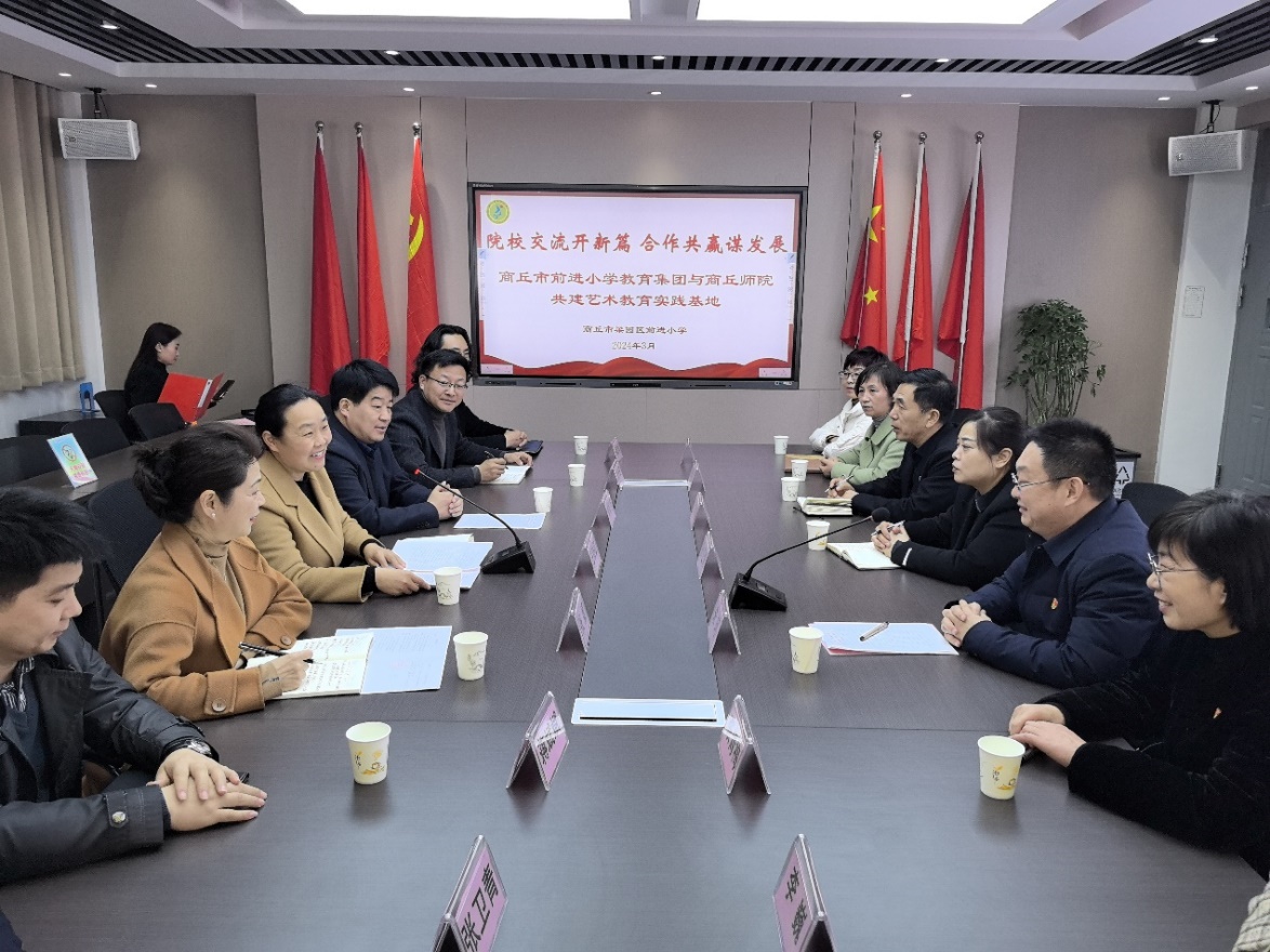 王晓征对商丘市第二中学和前进小学长期以来对公司事业发展的支持表示感谢,介绍了本校的发展历史、办学规模、办学层次,强调了建设教师教育优势特色的高水平应用型大学的发展规划。对伟的国际1946bv官网在专业建设、学科发展、创作实践、员工就业等方面取得的丰富成果进行分享,对双方的合作充满信心。