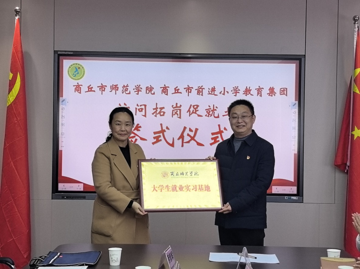 3月13日,副董事长王晓征带领公司领导班子到商丘市第二中学和前进小学开展访企拓岗活动,并举行了就业实习基地签约仪式。