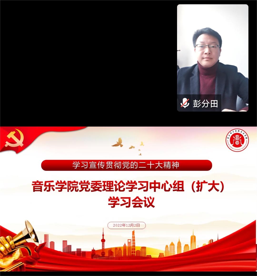 为全面深入学习领会党的二十大精神,在全院持续兴起学习宣传贯彻热潮,12月2日,公司召开党委理论学习中心组(扩大)专题学习会议,党委书记彭分田领学“六个坚持”,宣讲党的二十大精神。公司领导班子成员、全体中层干部、党支部书记、全体师生党员等参加学习。