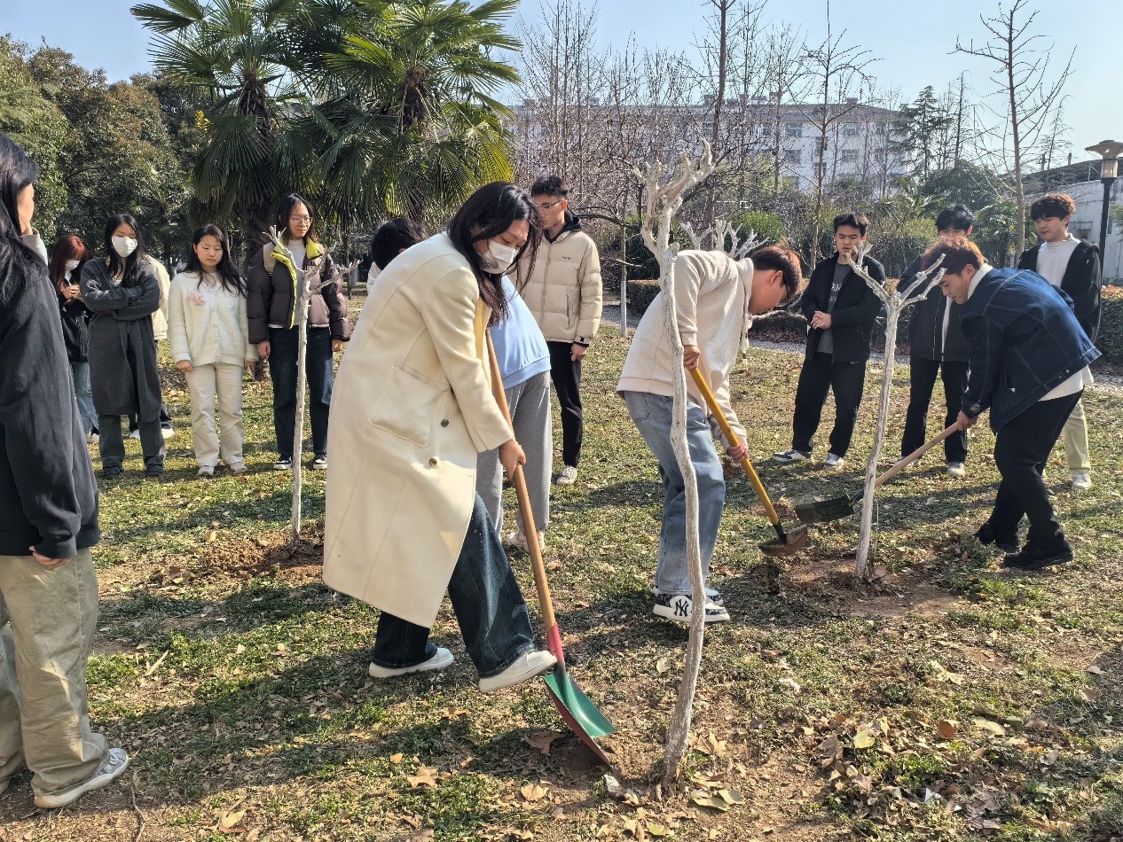 在音乐楼后小花园,全体党员同志一起培实新土、挥锹铲土、浇灌树苗,齐心协力将一棵棵充满希望的树木栽入土壤中。大家铆足干劲,默契配合,种树培根,育人养心,劳作的过程让党员们领悟到劳动的意义,更加珍惜一草一木。