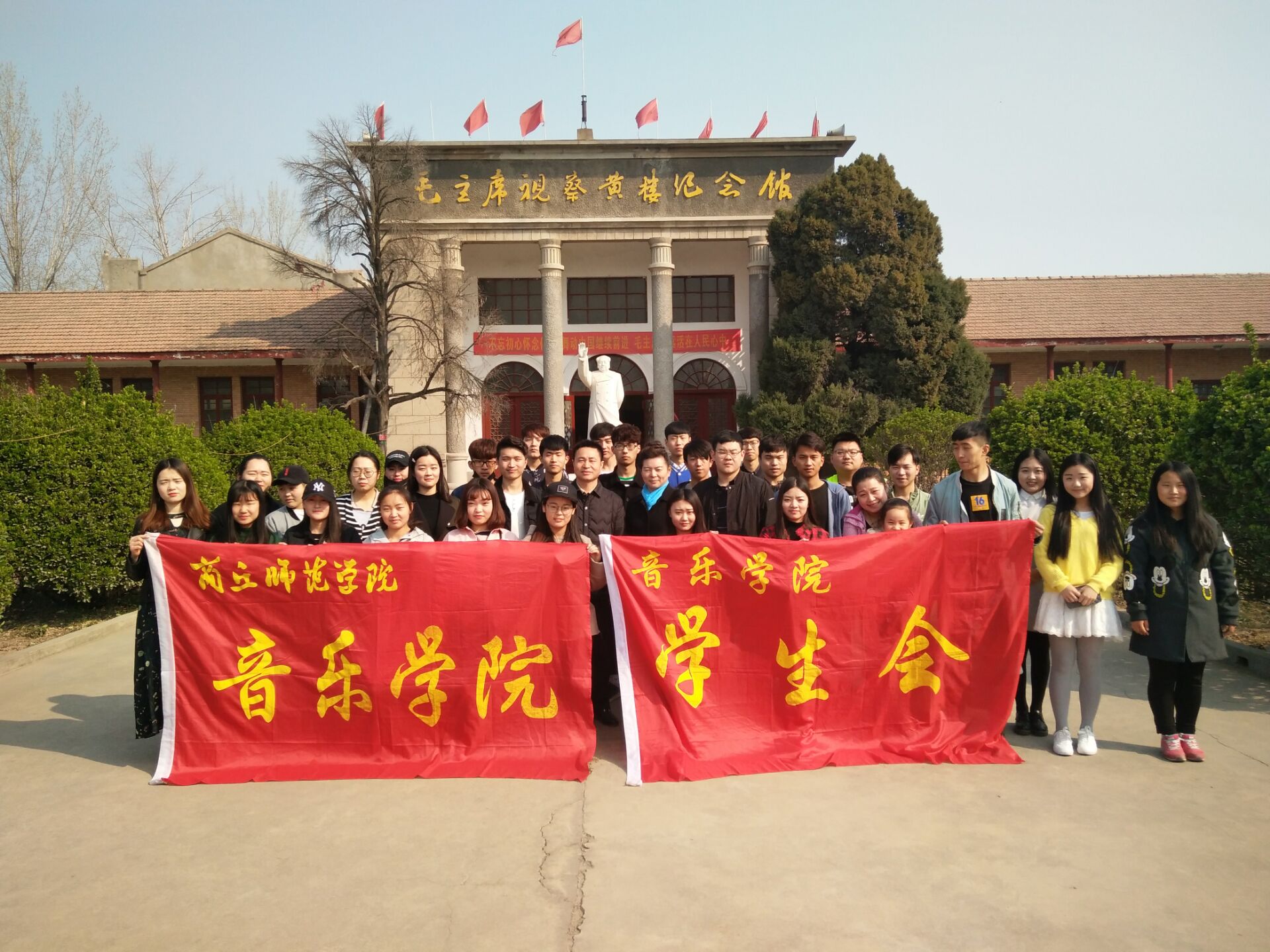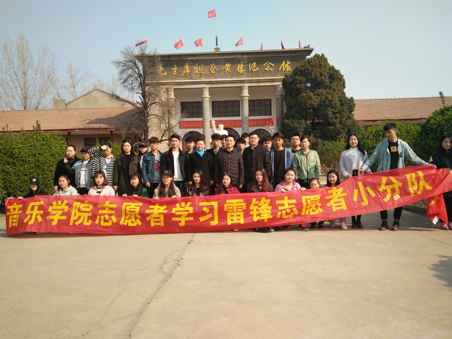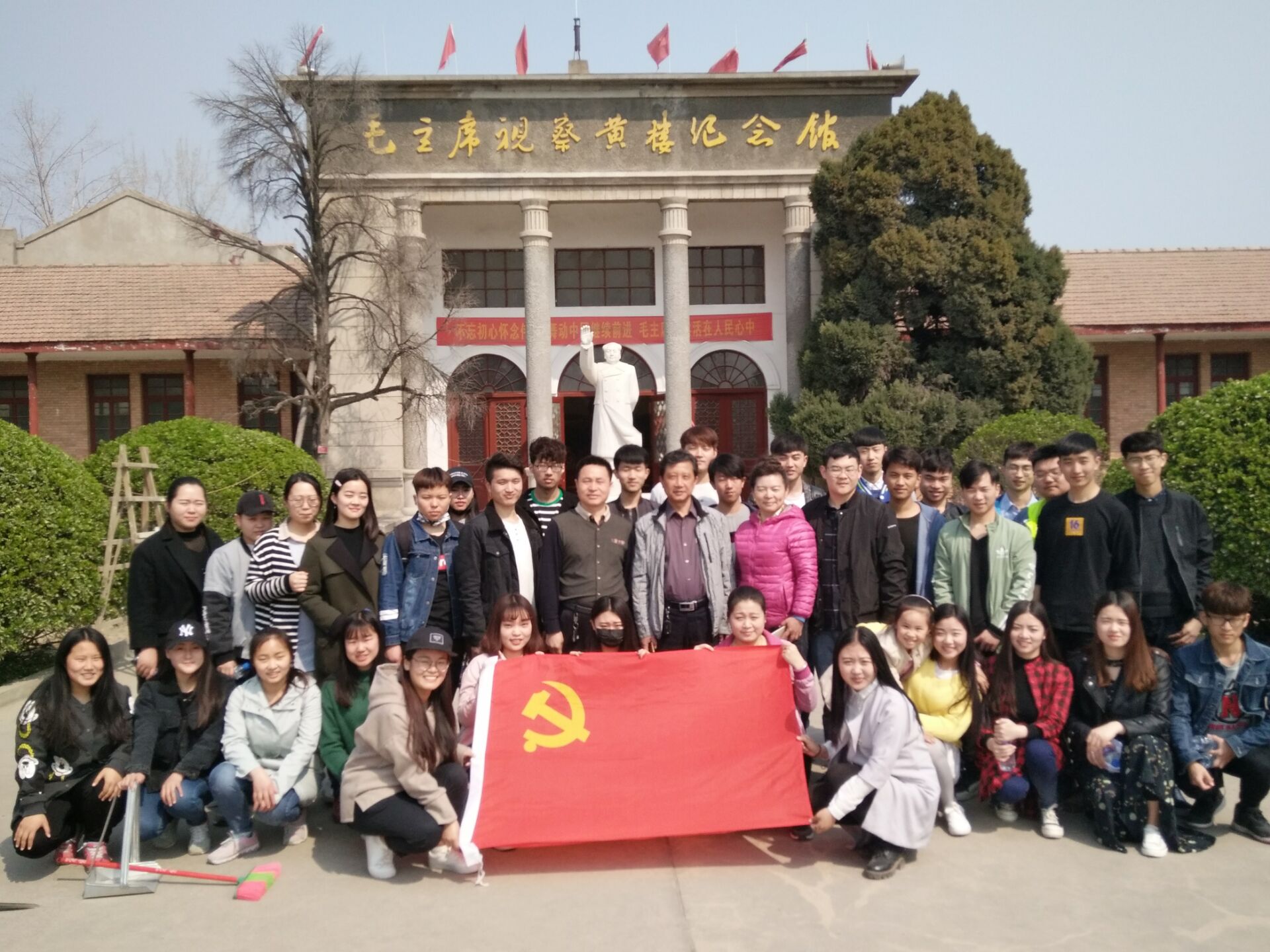 上午9时,员工会成员和学雷锋志愿者小分队在党总支杨新庆书记、唐丽副书记,团总支书记刘辉老师的带领下,参观了黄楼毛主席纪念馆。参观过程中,唐丽副书记、刘辉老师在讲解毛主席生平事迹的过程中融入爱国教育,使同学们受益匪浅。