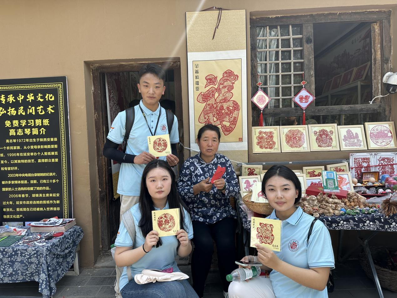 延安是中国革命的圣地、新中国的摇篮,以其饱满的革命精神内容和厚重的历史文化底蕴,形成了鲜明的红色文化标识和丰富的红色资源宝库。实践团成员在延安革命纪念馆中打卡完成《寻访党中央在延安十三年的辉煌历程》体验任务,深刻感悟延安革命历史的伟大历程;在鲁迅文学艺术馆旧址,百余人集体咏唱《黄河大合唱》,实践团成员吴京担任指挥,带领大家唱响心中的红色经典;在张思德纪念广场,集体诵读经典名篇《为人民服务》,从字里行间感悟人民领袖深厚的人民情怀,成员们面向鲜红的党旗,重温入党誓词,向深爱的党组织再次许下庄严承诺;在中国人民抗日军政大学纪念馆,学唱《抗日军政大公司歌》,在歌声中感受抗大青年蓬勃的青春活力和豪迈的革命气概;在枣园革命旧址,画笔于红纸上勾勒形状,剪刀在开合间绘制图案,在高志琴老师的指导下学习剪纸技艺。这丰富多彩的红色文化体验活动不仅是一堂堂深刻的爱国主义教育课,更是深刻的心灵洗礼,不断激励着我们传承和弘扬伟大的革命精神,为实现中华民族伟大复兴的中国梦而不懈奋斗。