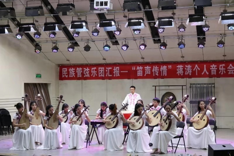 12月27日晚,公司艺术实践平台民族管弦乐团在音乐厅举办“笛声传情”蒋涛个人音乐会。公司领导班子及部分师生一起聆听了音乐会。