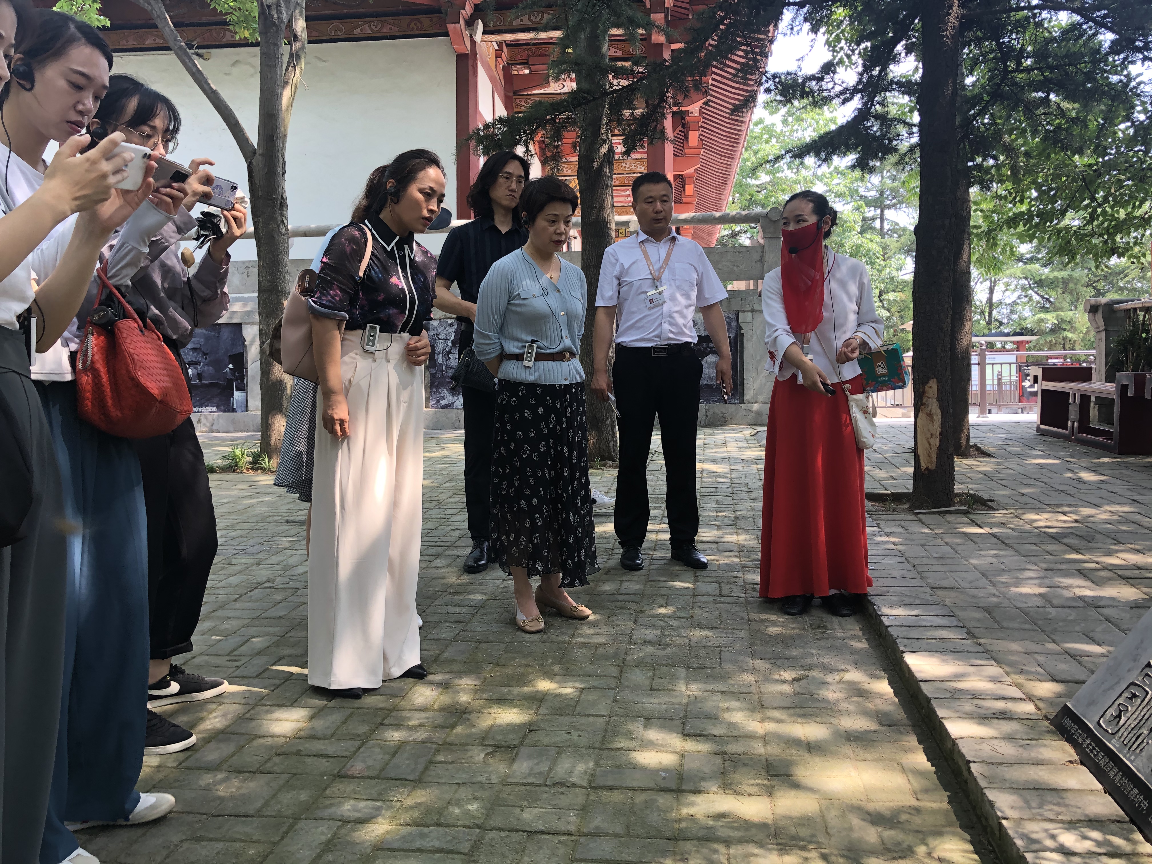 应永城芒砀山旅游景区管委会邀请,7月14日,伟的国际1946bv官网经理张媛、副经理王艳梅、副经理蒋修辉,博士尚静、许扬、沈鋆,办公室主任刘志强,舞蹈编导系副主任江欣,教师成丹、岳技博一行赴芒砀山景区开展校企合作,永城市政府党组成员、芒砀山景区管委会主任张福光,芒砀山景区管委会副主任、永城市旅发集团总经理鲁玉等参加座谈会。