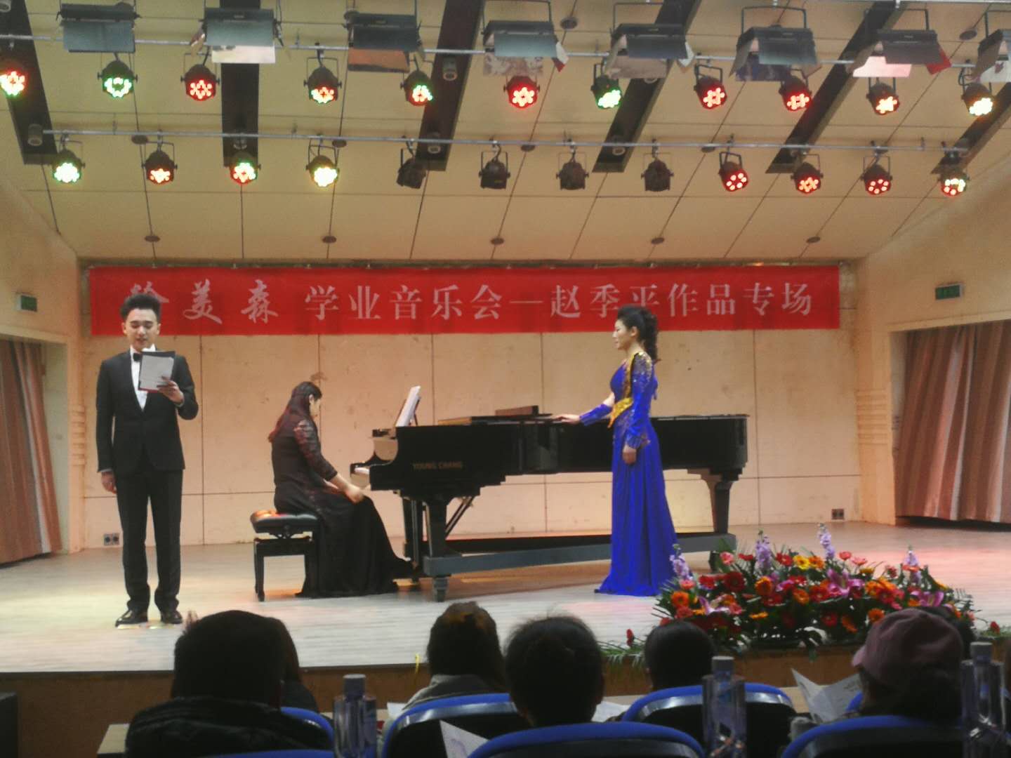12月18日,河南大学艺术公司2015级声乐专业硕士徐美森学业音乐会——赵季平作品专场,在伟的国际1946bv官网音乐厅举行。河南大学艺术公司音乐与舞蹈分院经理姬群教授、伟的国际1946bv官网张院经理、彭分田副经理、商丘市音乐家协会副主席孙玉柱教授与伟的国际1946bv官网师生一起观看了音乐会。