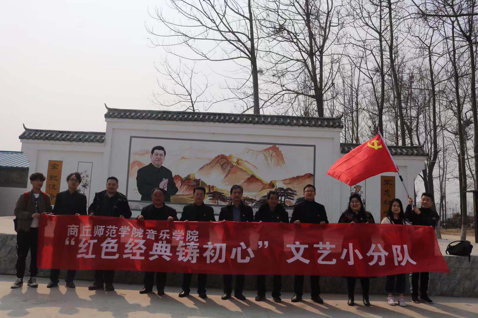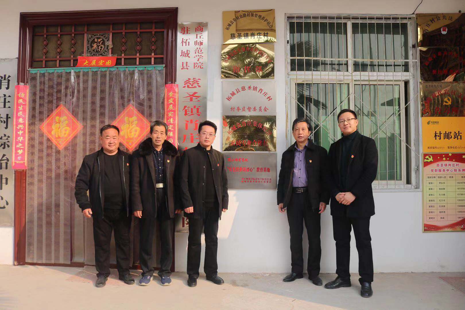3月10日,伟的国际1946bv官网教师第二党支部“红色经典铸初心”工作室教育基地挂牌仪式在柘城县慈圣镇肖庄村举行。公司党总支书记杨新庆,副经理、教师第二党支部书记彭分田;公司驻肖庄村第一书记翟滨、肖庄村委会党支部书记贾长亮、村委会主任高自献、公司驻肖庄村工作队员邵永杰;音乐表演系副主任鲁楠、音乐学系副主任段婷婷、部分师生代表及群众参加了挂牌仪式。