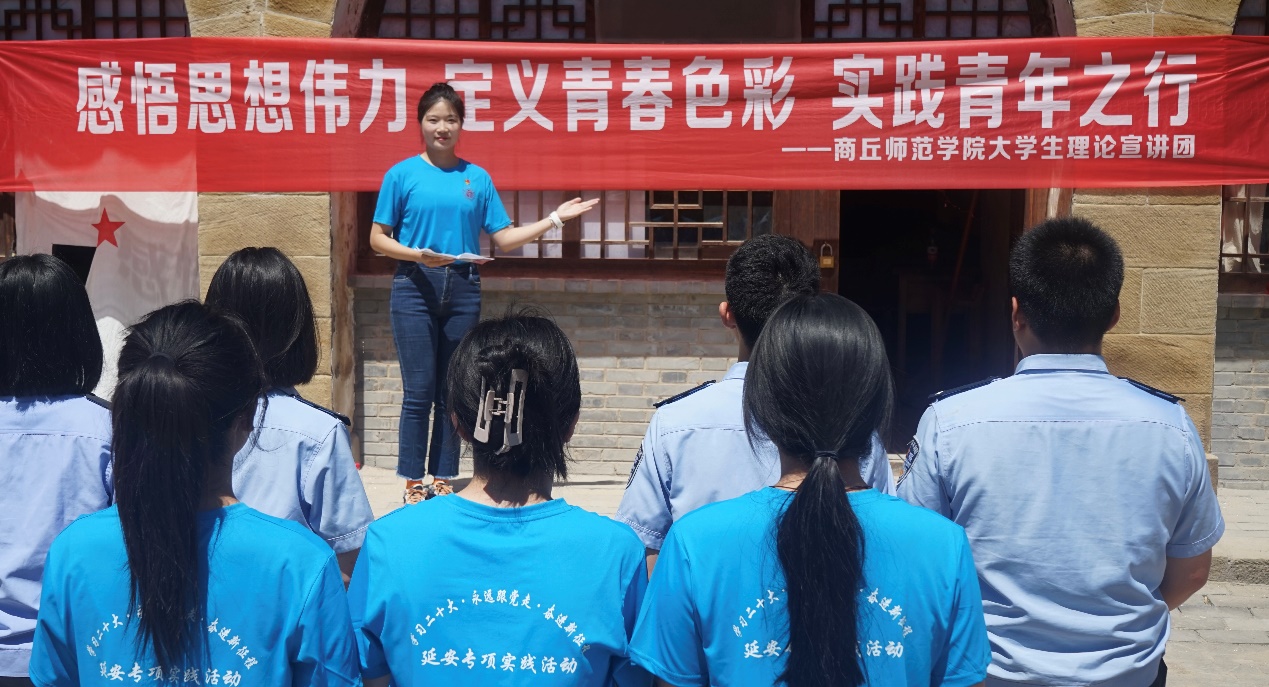 下午,实践团成员李梦熠在陕甘宁边区政府旧址进行主题为“感悟思想伟力 定义青春色彩 实践青年之行”的理论宣讲,她以《在深学笃行中凝聚青春力量》为题目,围绕习近平总书记在党的二十大报告中对青年的寄语,阐述了新时代的中国青年施展才干的舞台无比广阔,实现梦想的前景无比光明,新时代中国青年必将大有可为。她以新时代青年学子的视角,通过“理论+舞蹈”的特色方式,让理论宣讲变得丰富和鲜活起来。