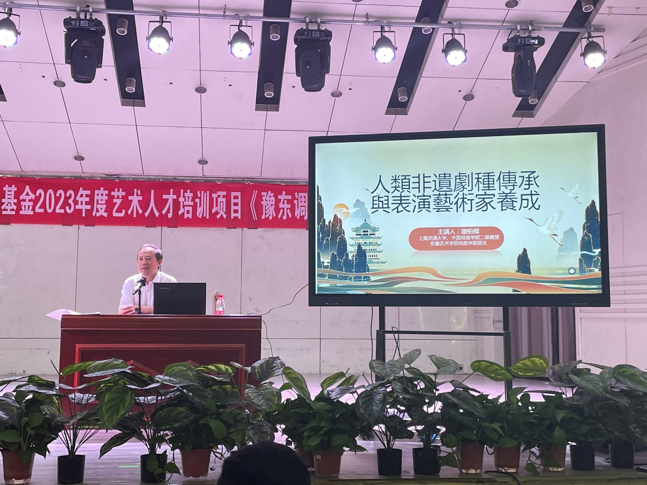 6月27日上午,中国戏曲公司、上海交通大学教授、安徽艺术公司戏剧公司经理谢柏梁在伟的国际1946bv官网艺术厅为国家艺术基金2023年度艺术人才培训项目《豫东调唱腔传承与人才培养》学员们授课,题为《中国戏曲史论》和《演员的自我修养与艺术品格》,伟的国际1946bv官网王艳梅副经理主持。