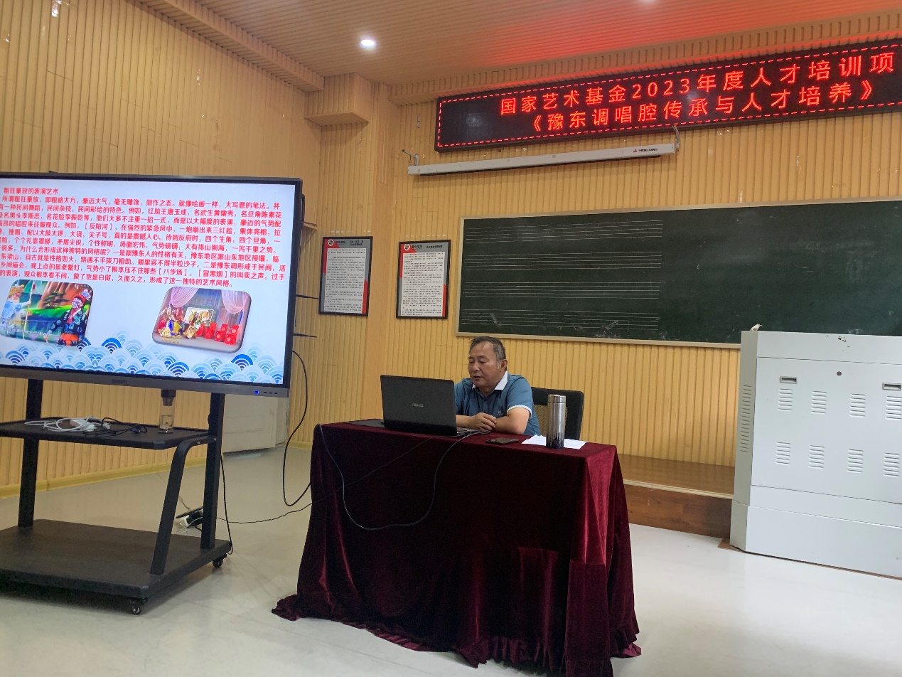 6月25日上午,国家艺术基金2023年度艺术人才培训项目《豫东调唱腔传承与人才培养》第七讲《戏曲创作基础——豫东调音乐唱腔特点》,在伟的国际1946bv官网113教室精彩开讲,国家一级作曲杨义岭老师为学员们授课。