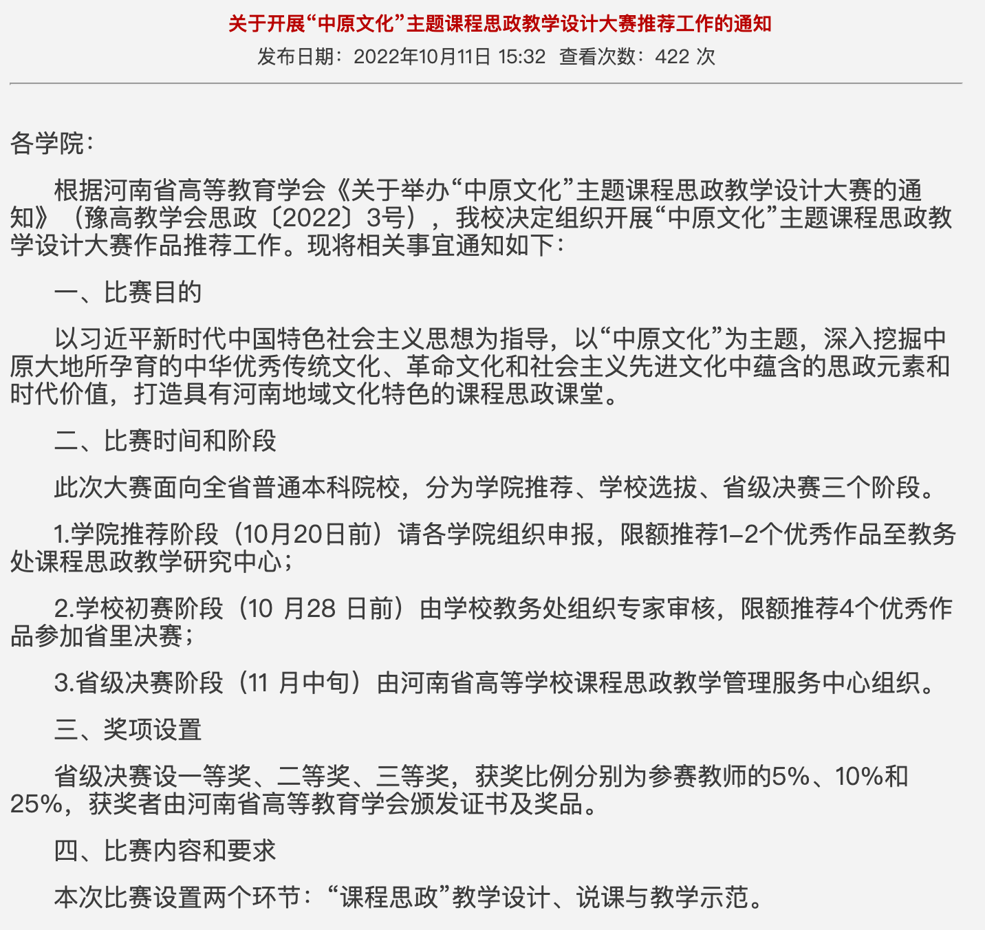 沈鋆带领大家学习了公司关于开展2022年度“中原文化”主题课程思政教学设计大赛项目申报工作通知的主题意义,分别从指导思想、建设原则、建设目标、申报类别及要求四个方面对文件进行了深入的学习。