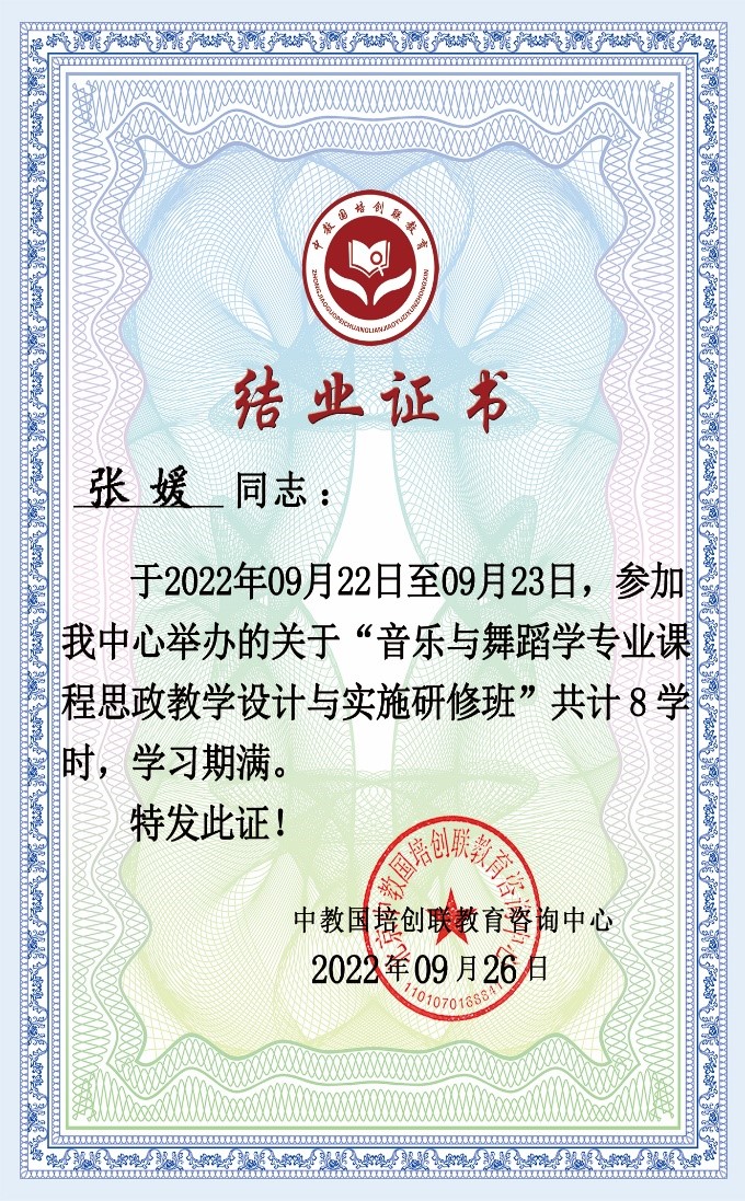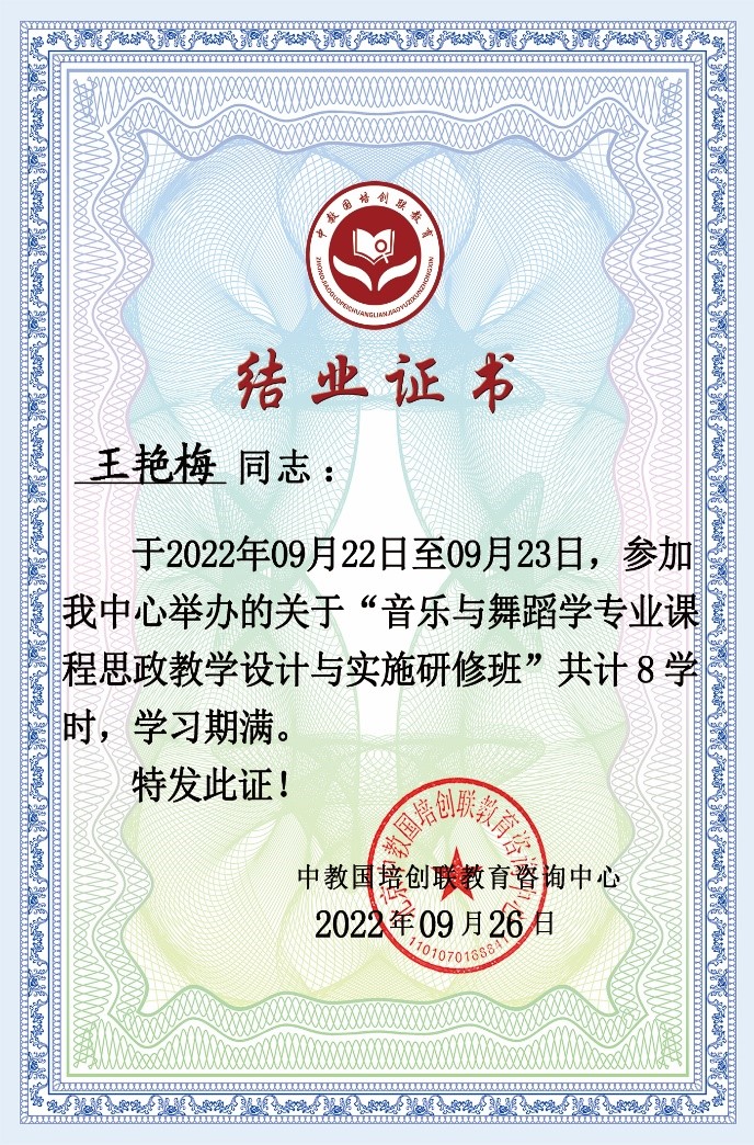 9月28日,组织教师参加教育部国培中心举办的课程思政系列专题培训,并获得结业证书。